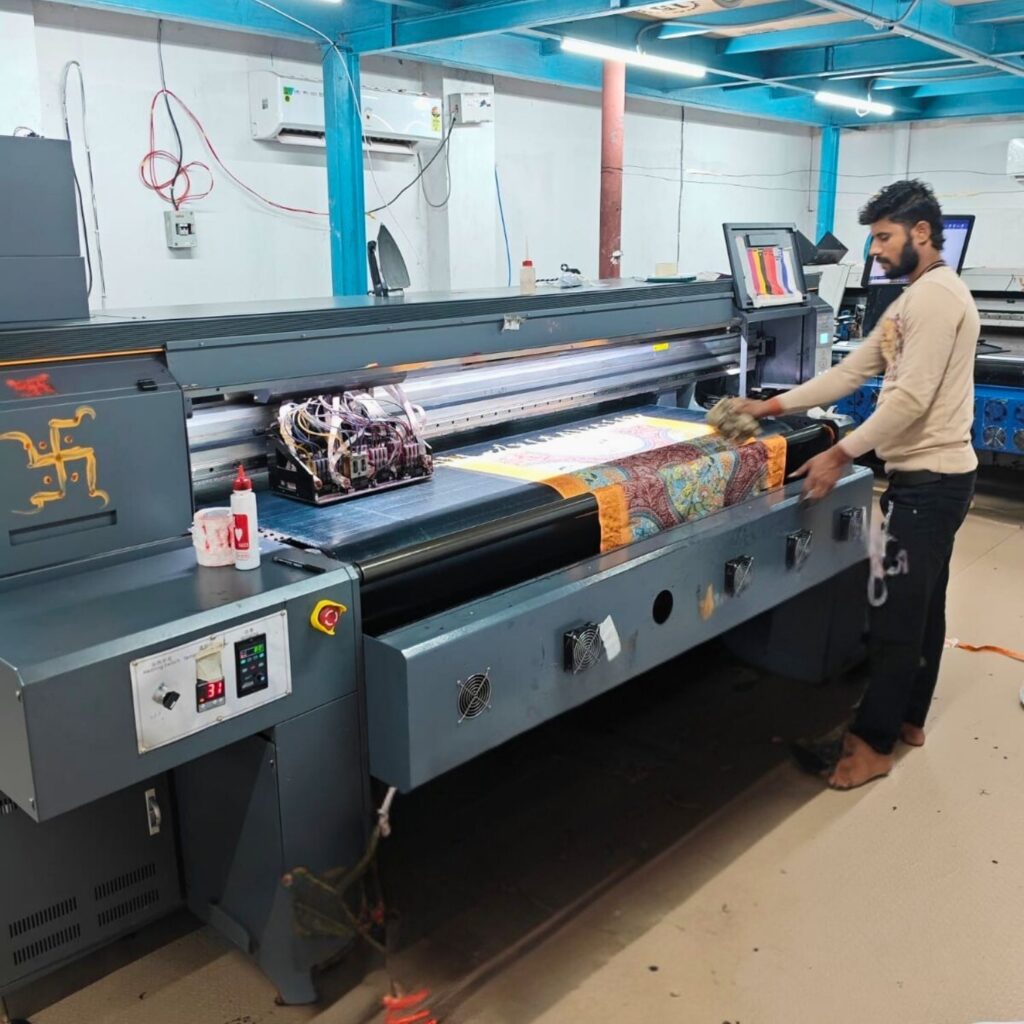 What makes us different is our focus on quality and customer satisfaction. Every project is handled with utmost care, starting from design consultation to final delivery. We use advanced machines capable of printing on various fabrics such as cotton, silk, polyester, chiffon, and georgette. Our saree printing division specializes in motifs like Kalamkari, Bandhani, Ikat, and Pichwai, while our garment printing unit delivers trendy and durable apparel.